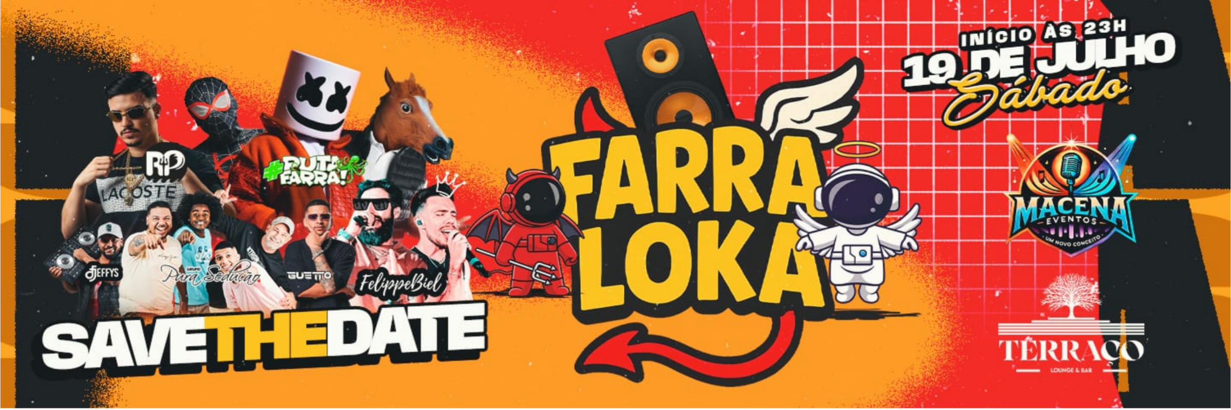 Prepare-se para a noite mais insana do ano! Dia 19 de julho, a FARRA LOKA vai tomar conta — música, gente bonita e muita energia. Garanta seu ingresso e venha viver essa experiência única!