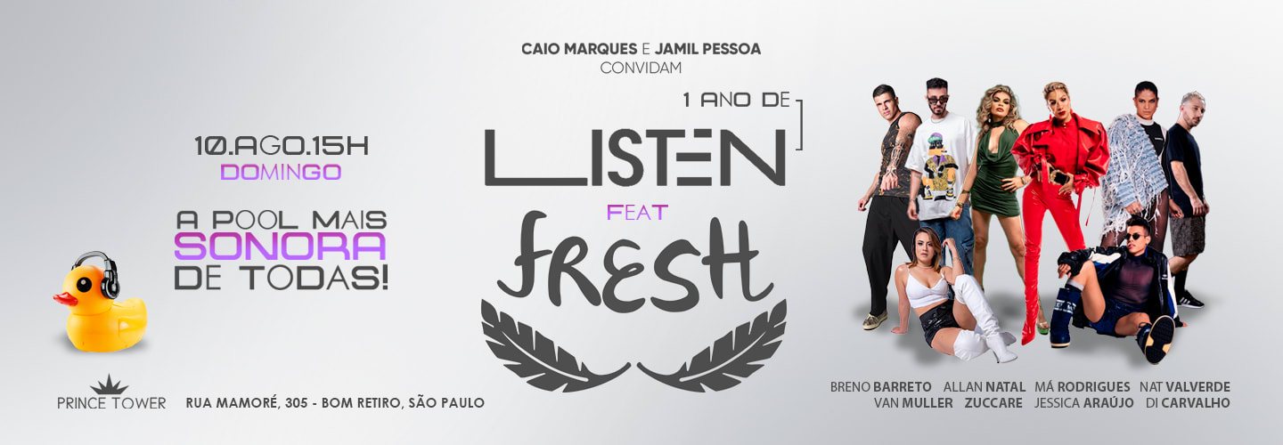 Vamos comemorar 1 ano de Listen junto com o nosso padrinho, a Fresh! Vai ser a pool mais sonora de todas!