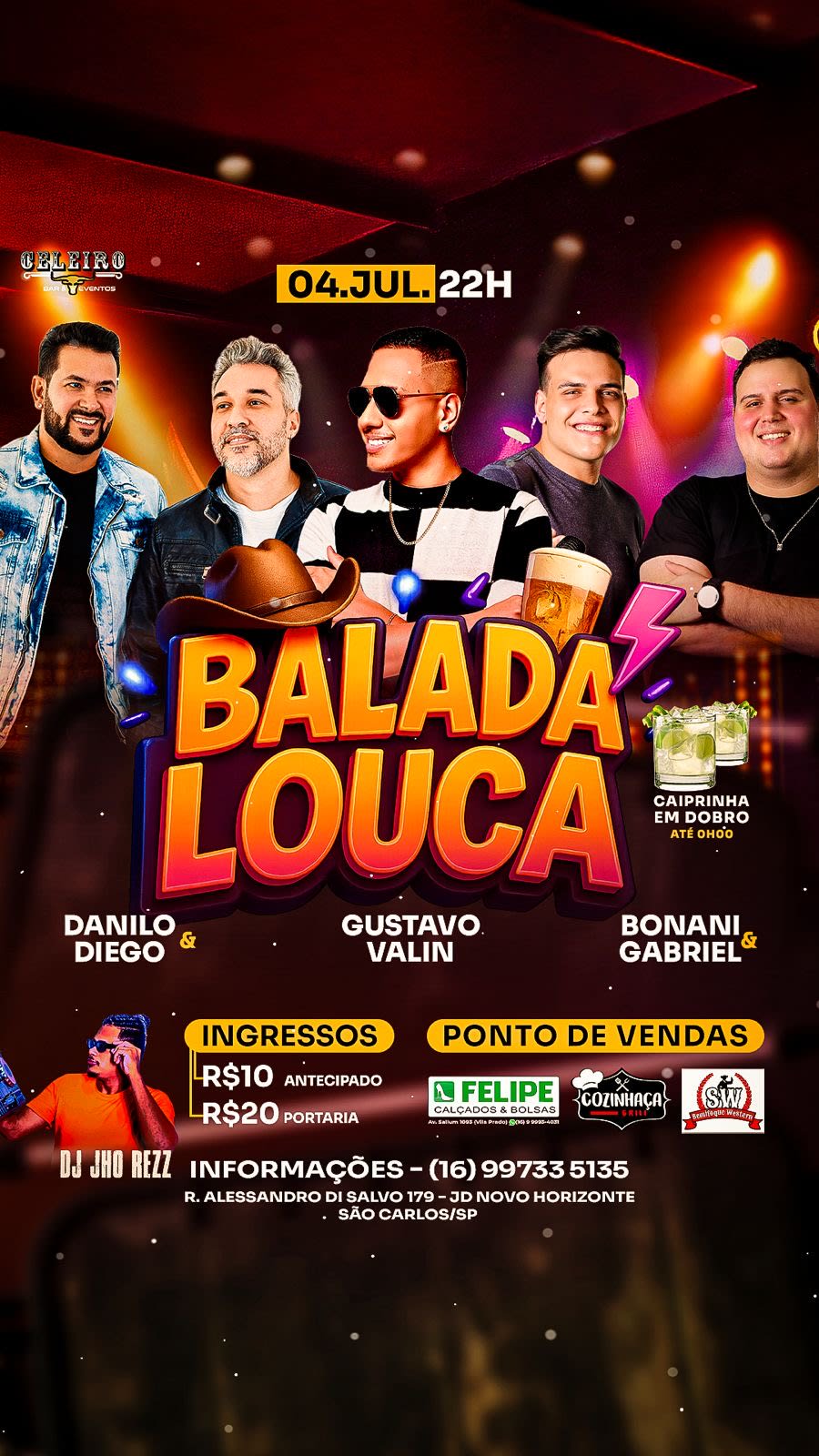Vai ter Danilo & Diego, Gustavo Valin, Bonani & Gabriel e o DJ Jho Rezz comandando tudo!