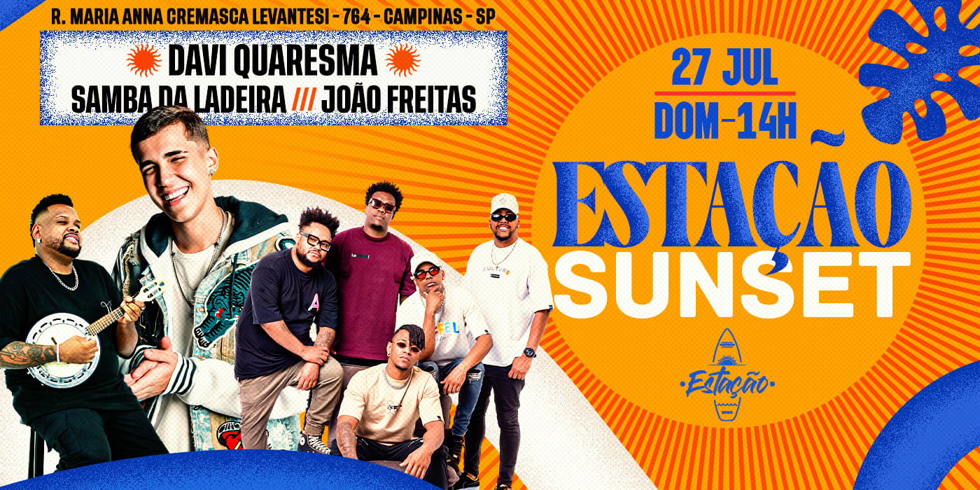 O pôr do sol mais quente de Campinas tá chegando com Davi Quaresma, Samba da Ladeira e João Freitas pra comandar a vibe!