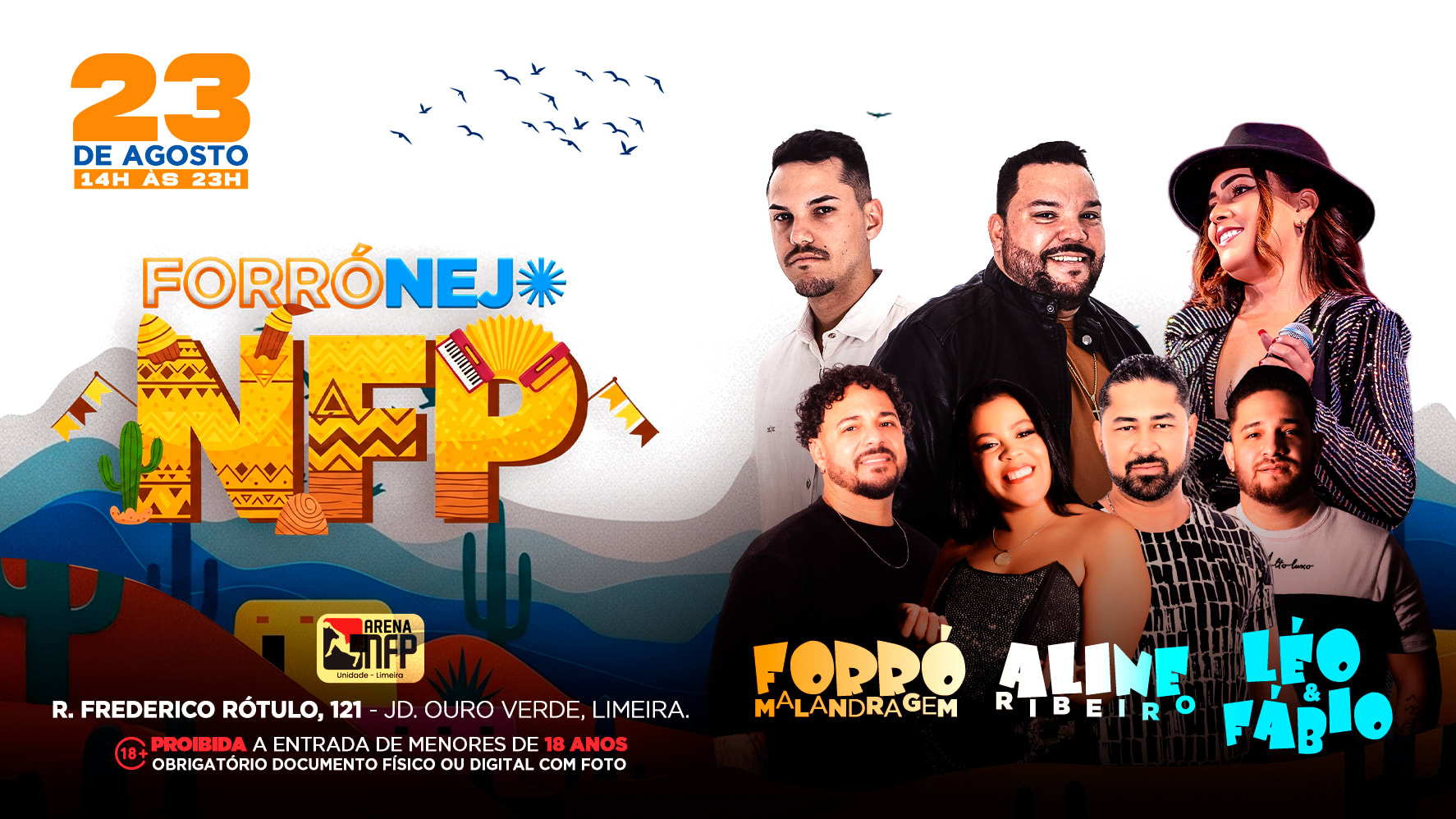 Prepare-se para viver uma experiência única na NFP! No dia 23 de agosto, o melhor do forró e sertanejo se encontram em um evento cheio de energia, música boa e aquele clima que só a NFP tem!
