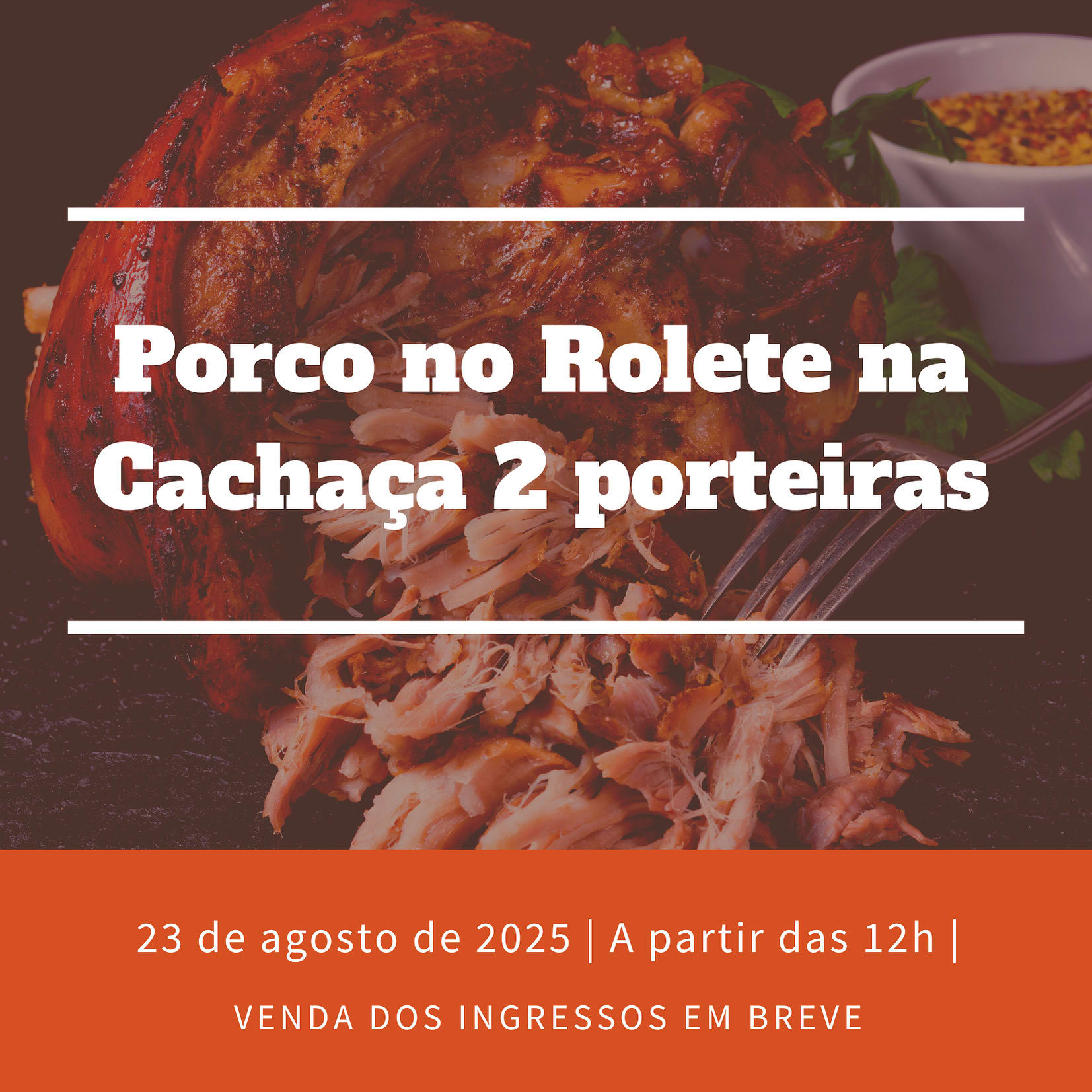 No dia 23 de agosto, a partir das 12h, a Cachaça Duas Porteiras será palco de um evento especial: o tradicional Porco no Rolete! Uma experiência saborosa e autêntica no interior, com o primeiro lote a R$ 70 por pessoa. As bebidas são à parte, e o clima será de muita música, alegria e, claro, cachaça boa. Garanta já o seu ingresso e venha viver esse dia com a gente!