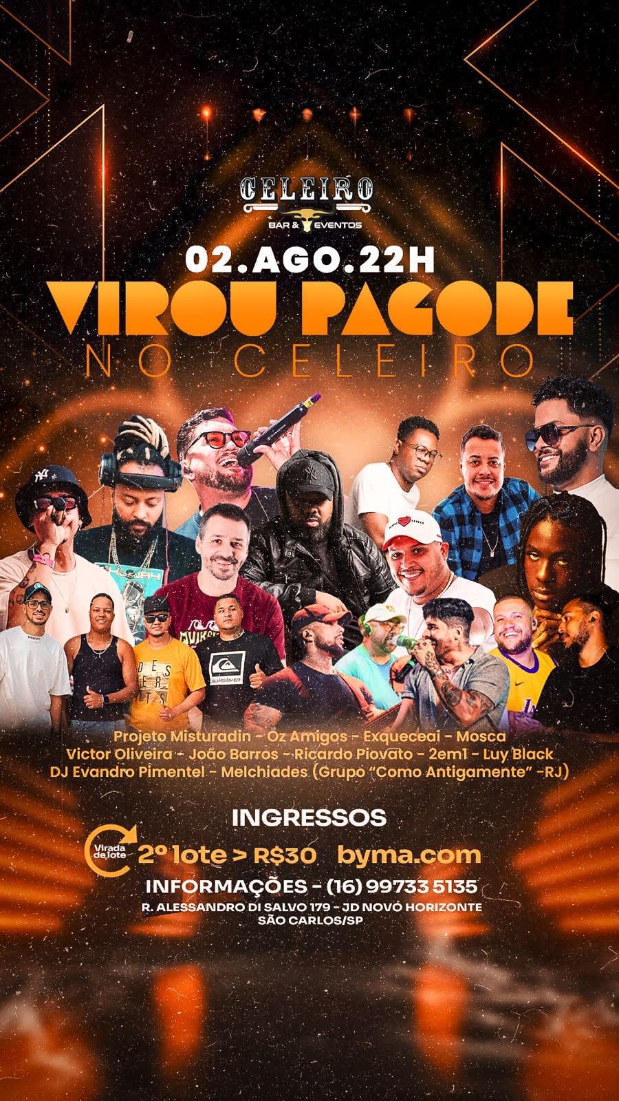 Dia 02/08, às 22h, o Celeiro vira pista de samba & alegria com um squad que dispensa apresentação: Projeto Misturadin, Nega do Samba, Oz Amigos, Exqueceai, Mosca, Victor Oliveira, João Barros, Ricardo Piovato, 2em1, Luy Black e o comando do DJ Evandro Pimentel. Bora cantar, sambar e fazer aquele coro bonito? 🎶🙌