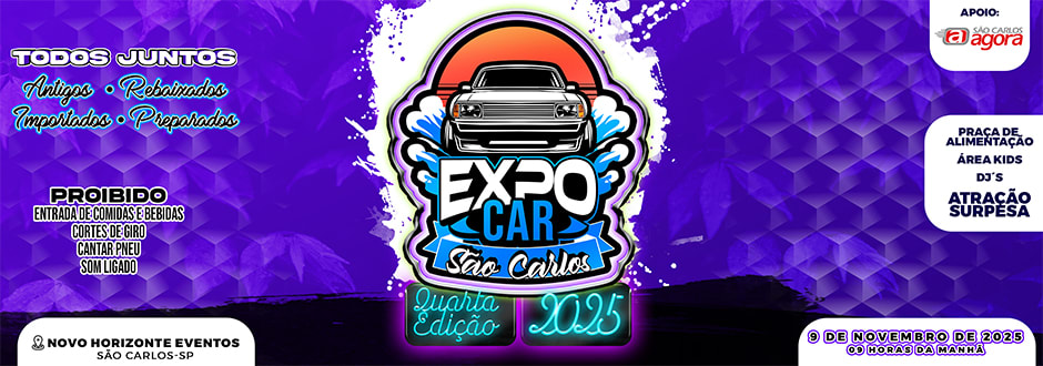 No dia 09 de novembro, das 9h às 17h, o Novo Horizonte Eventos vai tremer com a 4ª Edição do ExpoCar São Carlos – e essa promete ser a MAIOR DE TODAS! 🔥