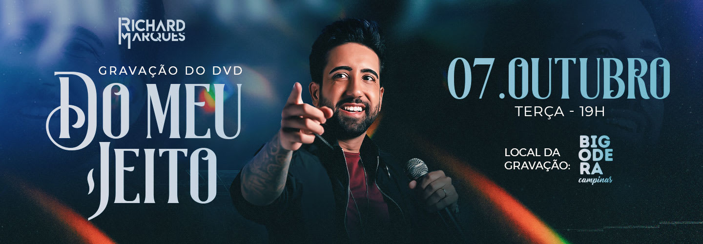 Richard Marques grava o seu novo projeto “Do Meu Jeito”, um DVD que traduz sua essência e personalidade dentro da música. Gravado no Bigodera, em Campinas, o trabalho marca um novo capítulo em sua trajetória artística, sendo o segundo DVD da carreira.
