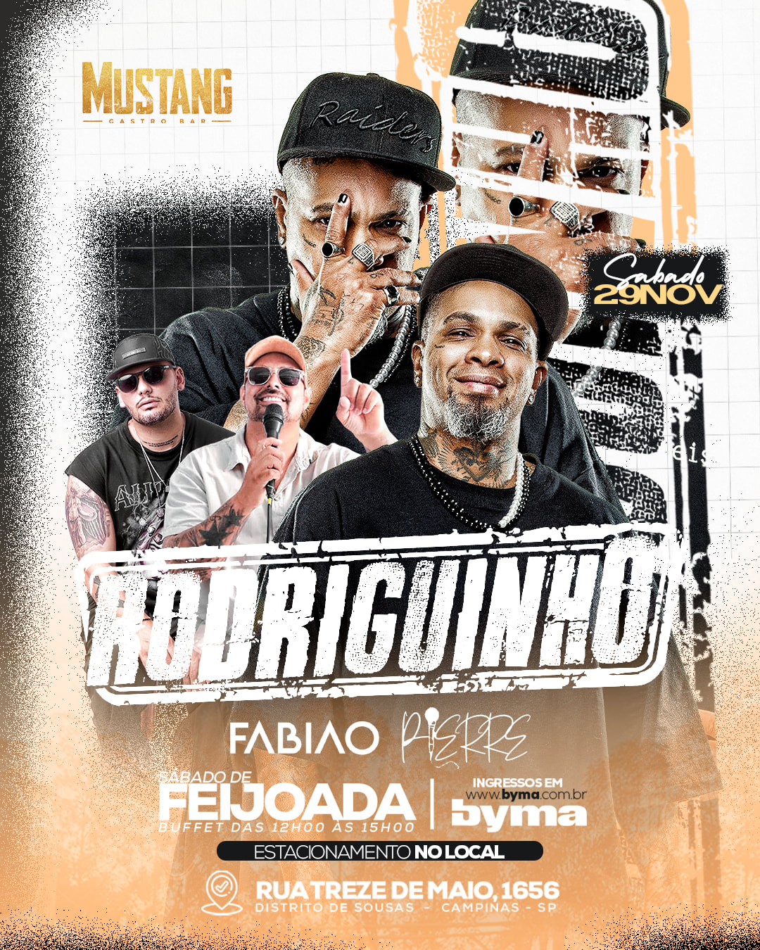 Pela primeira vez no Mustang Campinas, Rodriguinho chega com seu show cheio de carisma, voz marcante e aquele pagodinho envolvente que só ele sabe fazer!