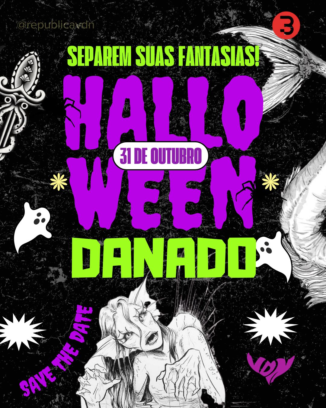 🌕🖤 A noite mais assustadora do ano está chegando, e você não vai querer ficar de fora dessa! Prepare sua fantasia mais macabra, porque no 31 de outubro o HALLOWEEN DANADO vai te levar para um mundo de mistérios, risadas sinistras e surpresas de arrepiar! 🎃👻