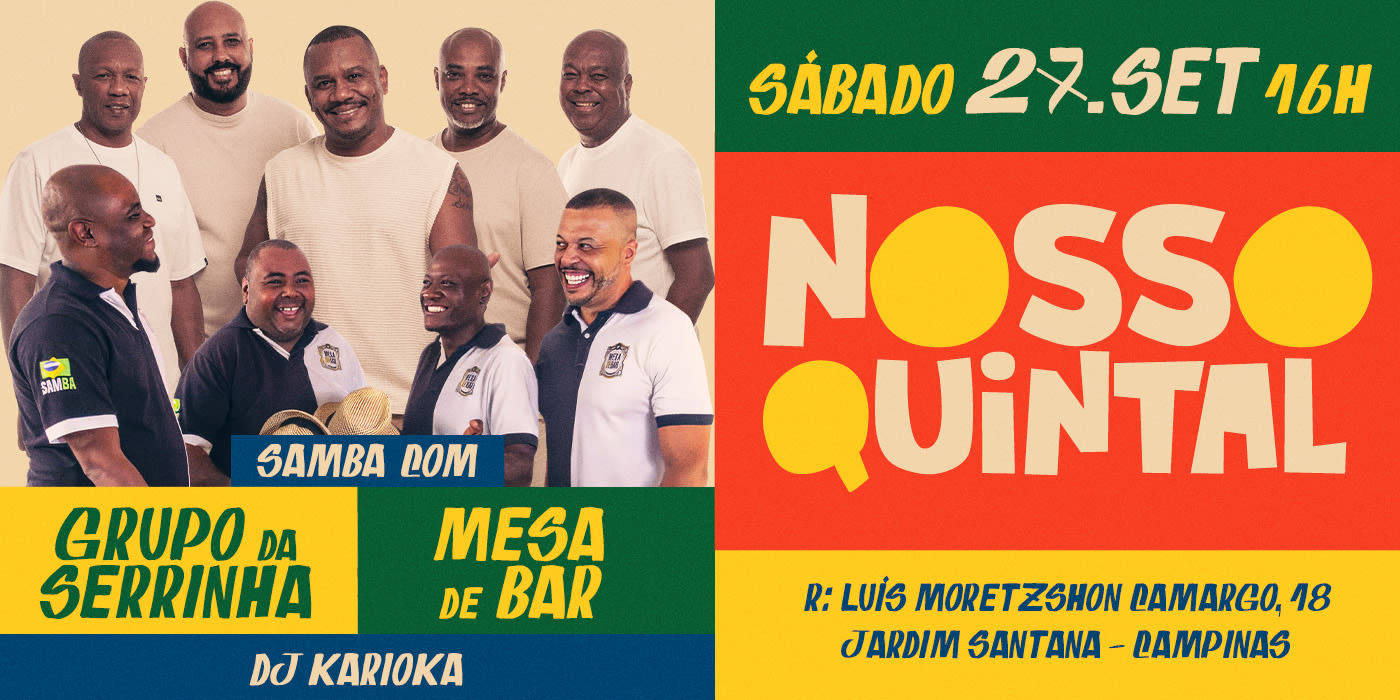 No dia 20/09, os grupos Da Serrinha e Mesa de Bar vão comandar a roda de samba e fazer o Quintal do Samba ferver. 🎶🔥