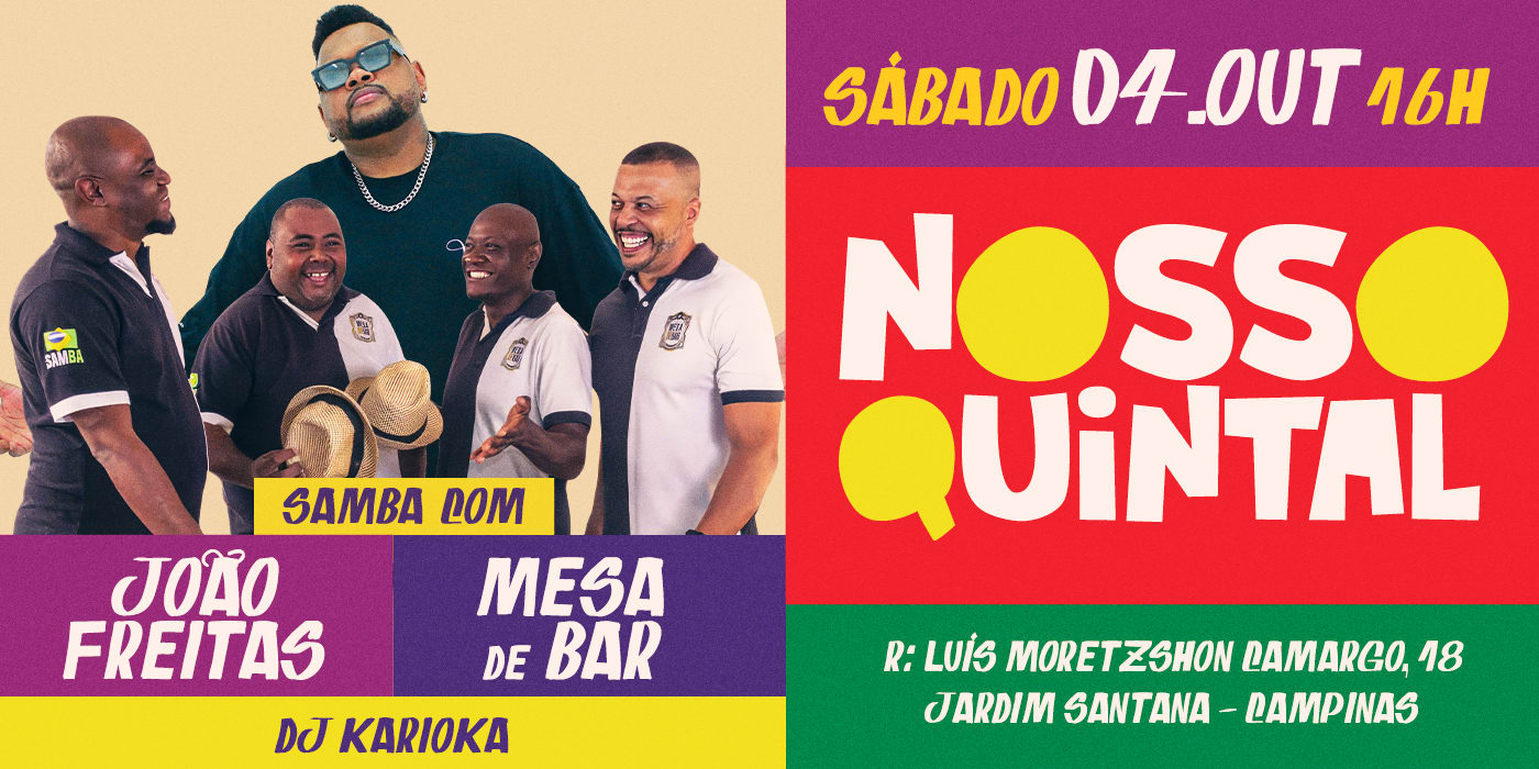 No dia 04/10, os grupos Mesa de Bar e João Freitas vão comandar a roda de samba e fazer o Quintal do Samba ferver. 🎶🔥