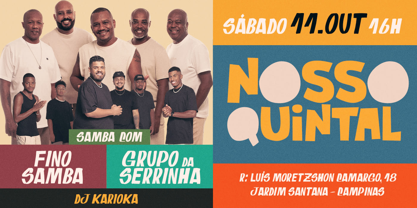 No dia 11/10, os grupos Da Serrinha e Fino Samba vão comandar a roda de samba e fazer o Quintal do Samba ferver. 🎶🔥