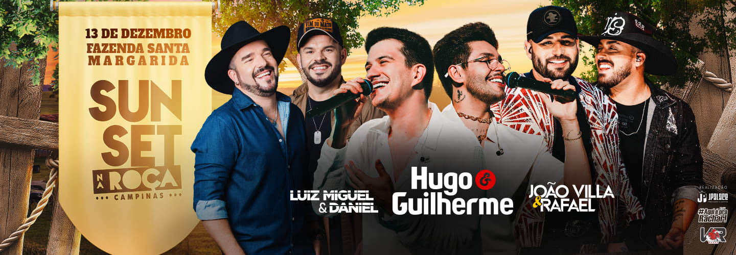 Prepare-se para viver uma tarde e noite de muita música, sabor e diversão em um cenário deslumbrante, com shows de Hugo & Guilherme, João Villa & Rafael, Luiz Miguel & Daniel e muito mais!