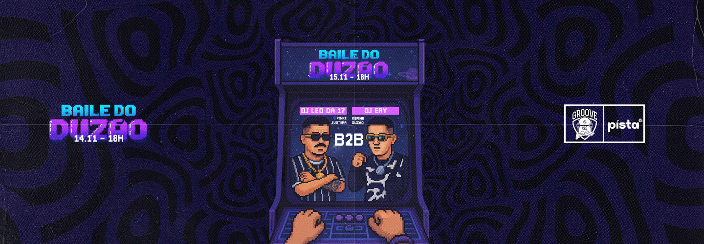 Um B2B daqueles, que lotou o Gate na última edição do Groove por lá: DJ Léo da 17 e DJ Ery dividindo a mesma cabine, com um time daqueles! Baile do Duzão é sold out na certa!