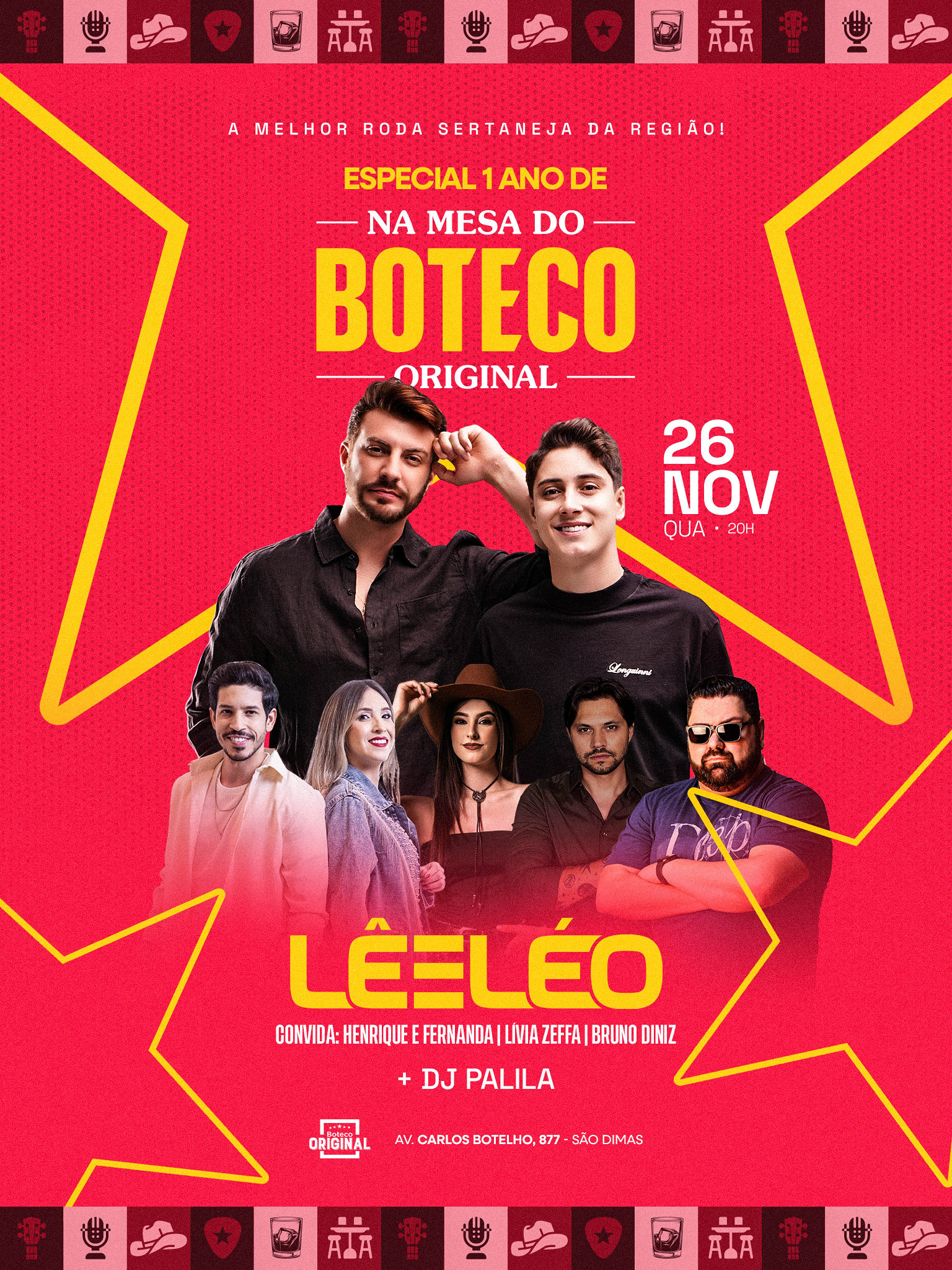 No dia 26 de novembro (quarta-feira), às 20h, venha celebrar o aniversário de 1 ano do projeto Na Mesa do Boteco – Original em uma noite especial recheada de música boa, convidados e muita animação!