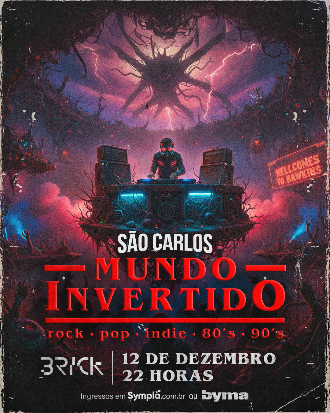 Então prepara o cabelo armado, a jaqueta jeans e o espírito aventureiro porque no dia 12 de dezembro o Bricks será completamente dominado pelo MUNDO INVERTIDO!