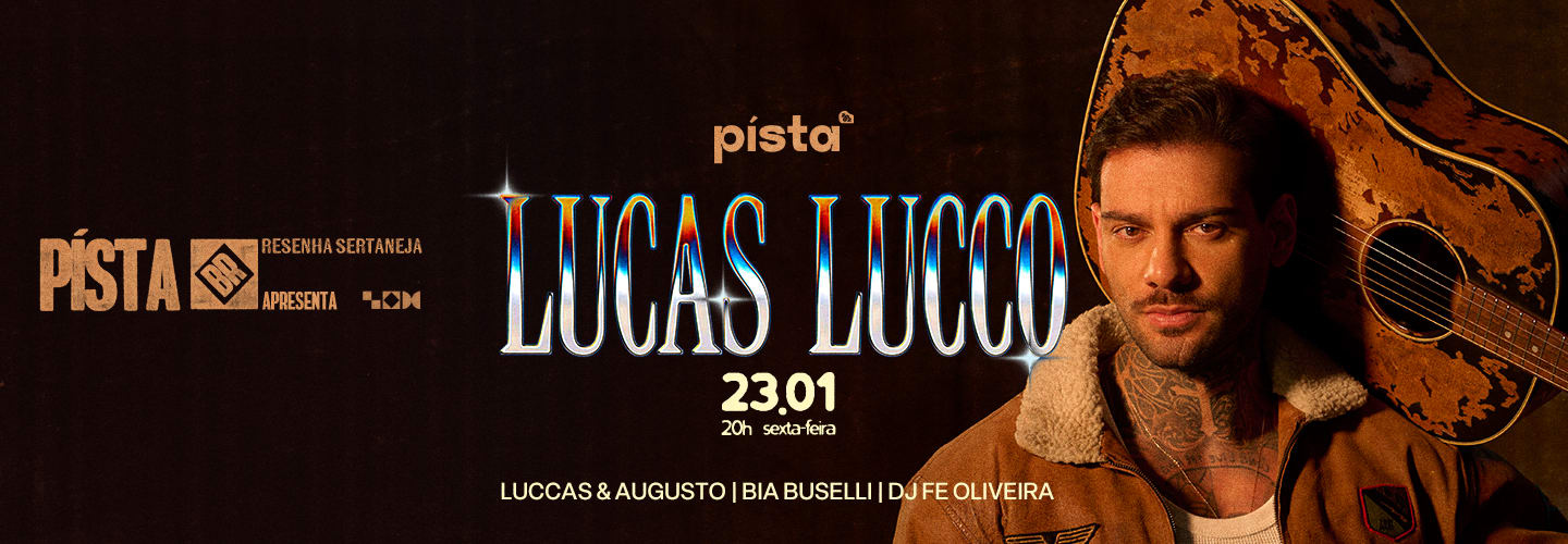 Dia 23 de janeiro, Lucas Lucco sobe ao palco do Pista 2002 pra comandar uma noite de emoção, hits e muita resenha boa.
