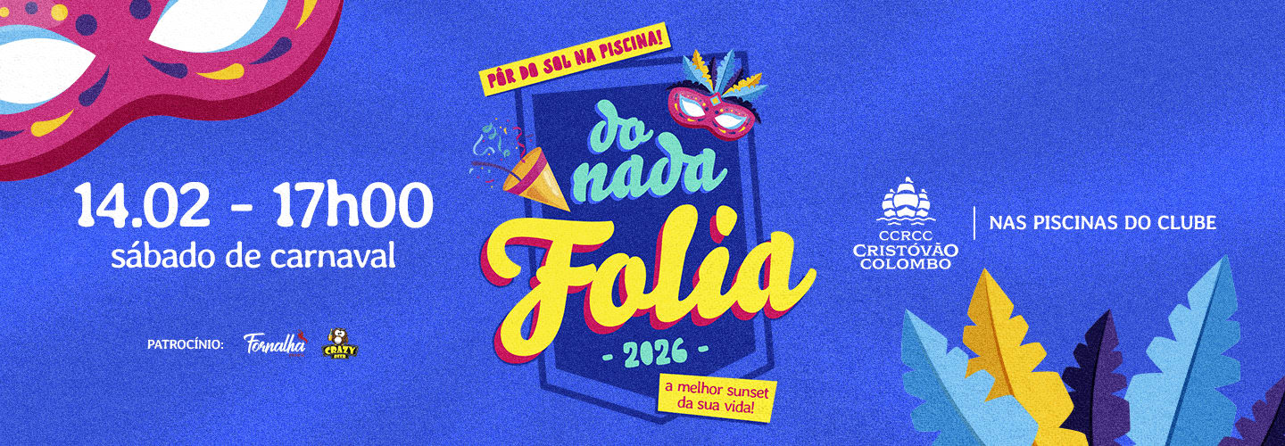 No dia 14/02, o Clube Cristóvão Colombo, vira palco de um Carnaval nas piscinas, começando às 17h, com aquele pôr do sol absurdo.