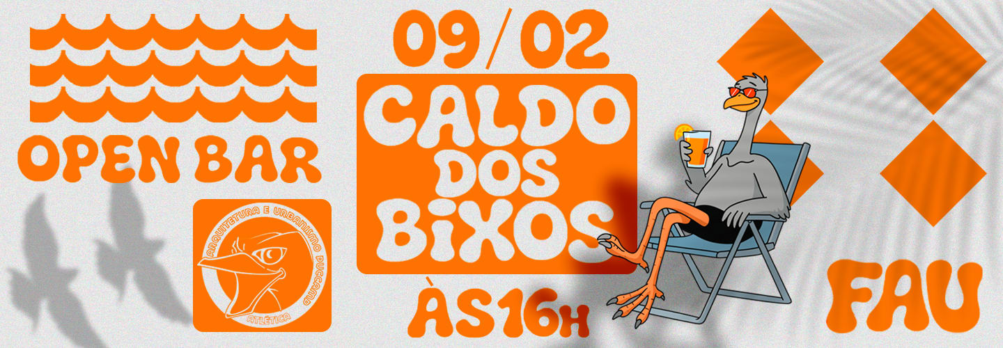 O Caldo dos Bixos é a primeira festa do ano da FAU, feita pra vocês conhecerem os veteranos, entrarem no clima e viverem de perto algumas das nossas tradições