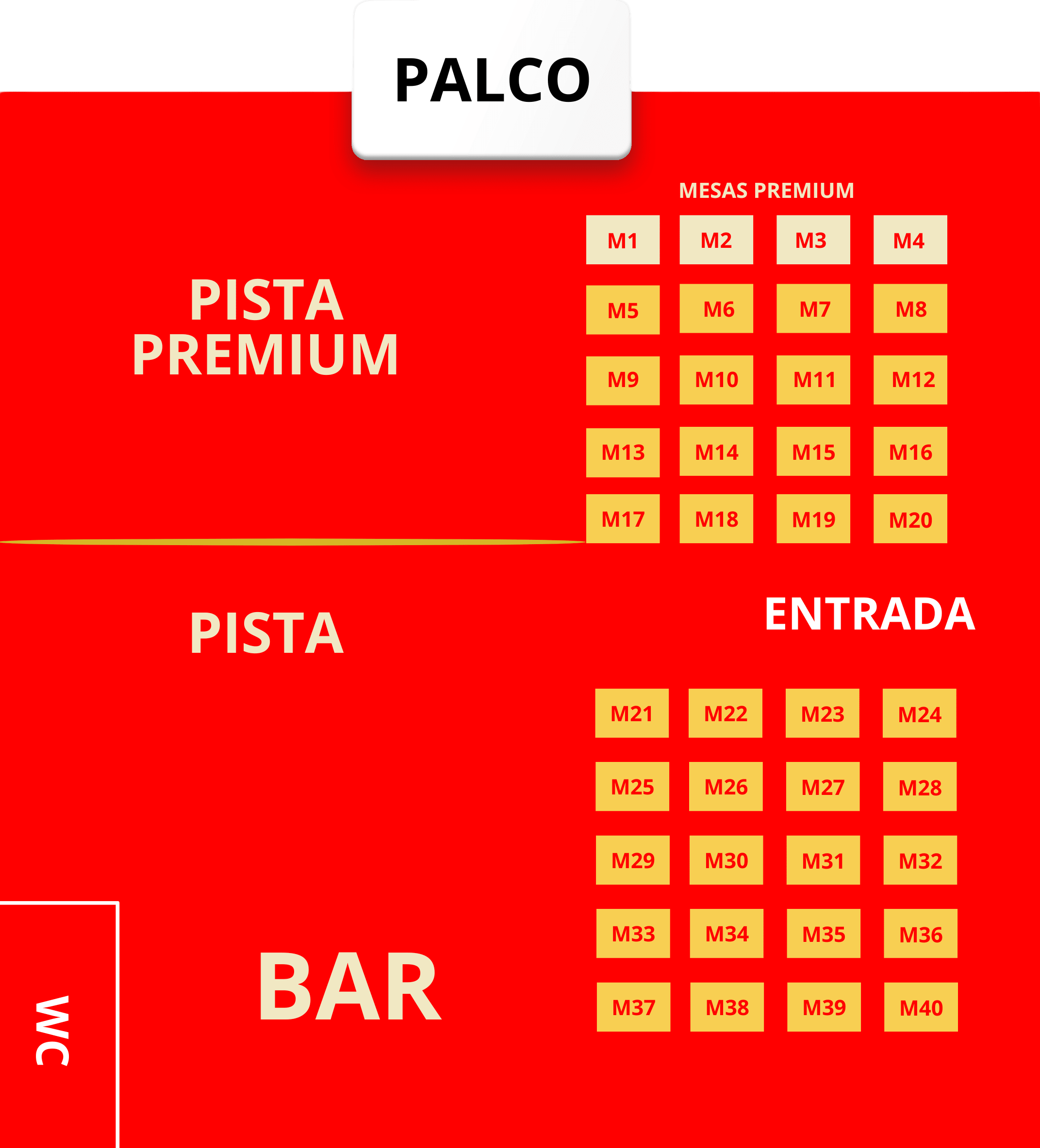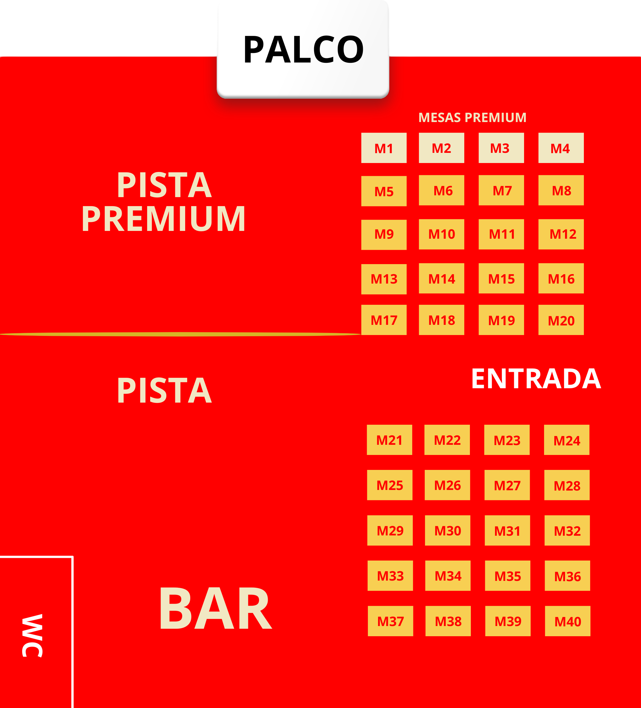 • Mesas – área reservada, assentos garantidos e atendimento exclusivo